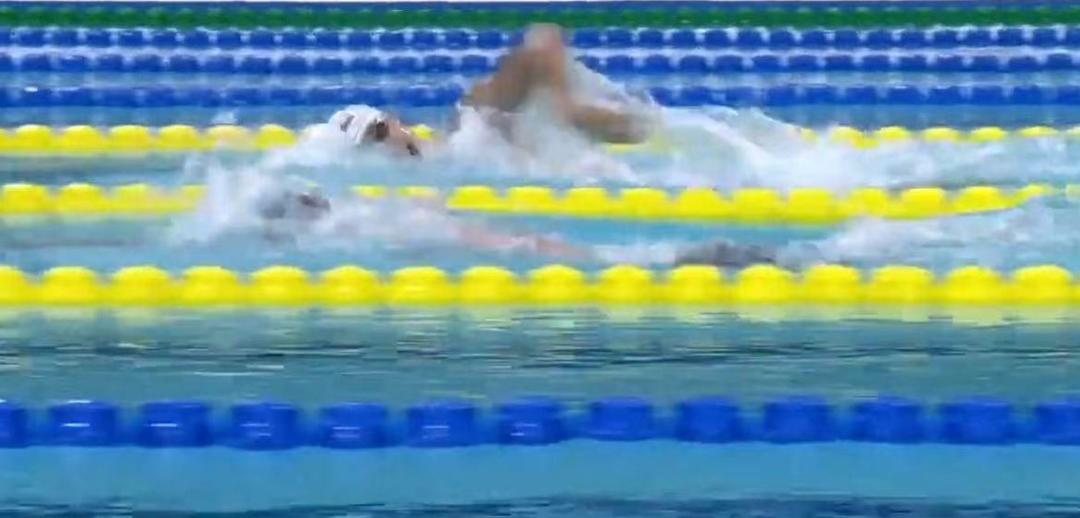 决赛哨响,张展硕入水后就处于领先位置,费立纬与刘培鑫紧随其后。第250米,费立纬开始发力缩小与张展硕的差距,并在300米处赶超。此时比赛开始进入白热化,张展硕紧紧咬住,双方只差0.03秒。