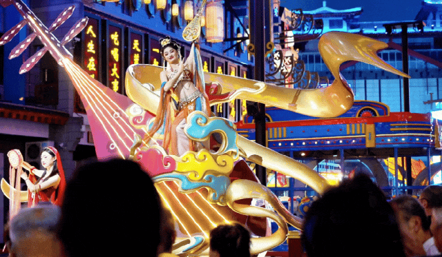 涑河岸边的霓虹与《夜画琅琊》的激光水幕交相辉映,身着古装的演员穿梭在人群中,柳琴戏的婉转唱腔与网红酒吧的鼓点隔空呼应,构成一场没有围墙的文化盛宴。